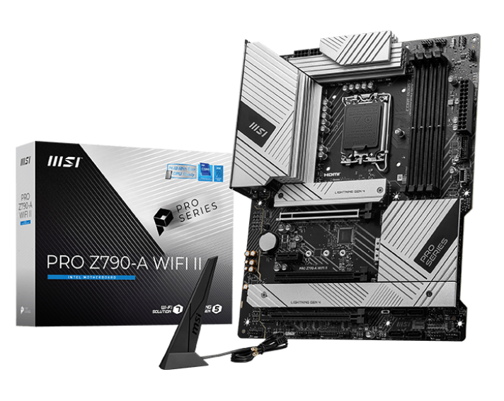 MSI PRO Z790-A WIFI II ATX Motherboard - Socket LGA 1700 - 1x PCIe 5.0 x16 - 1x PCIe 4.0 x4 - Support DDR5-7800+(OC) - 4x M.2 Slots - USB 20Gbps Type-C - DisplayPort 1.4 - HDMI 2.1 - Intel 2.5G LAN - Wi-Fi 6E 802.11ax - Bluetooth 5.3 (PROZ790AWIIFII)