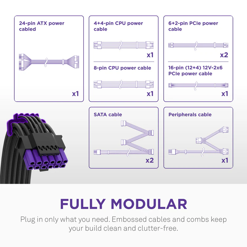 NZXT C750 Gold Core 750W Fully Modular ATX 3.1 Power Supply - 80 PLUS Gold Certified - Cybenetics Platinum - 135mm FDB Fan with Zero RPM Mode - 12V-2x6 PCIe 5.1 Connector (300W) - 2x PCIe 6+2-pin Connectors (PA-7G3BB-US)