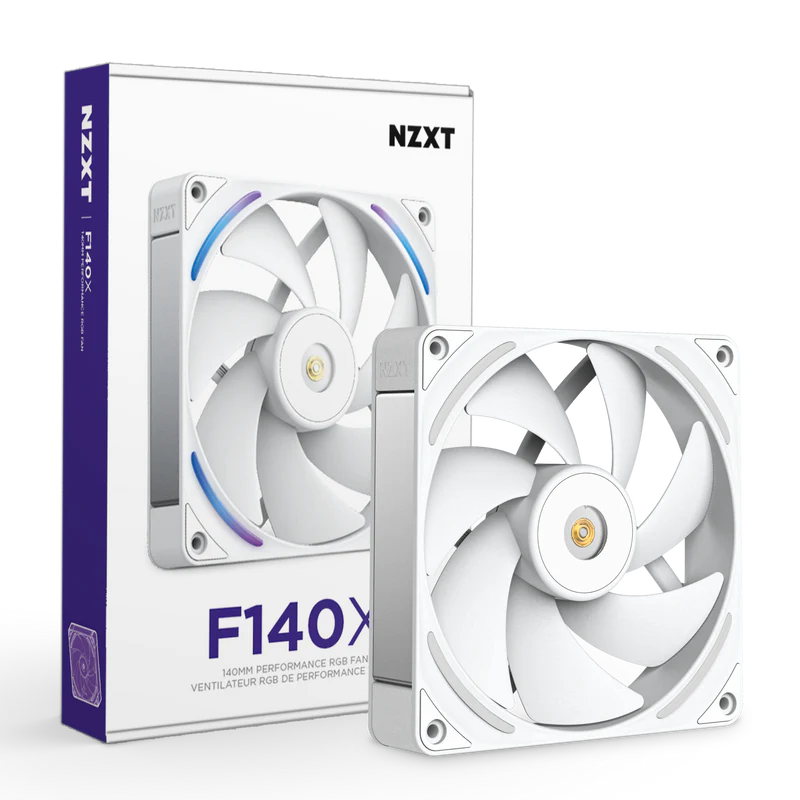 NZXT F140X 140mm Performance RGB Computer Cooling Fan - White - Liquid-Crystal Polymer Construction - Custom Hybrid Bearings - Reinforced Metal Core (RF-U14PN-W1)
