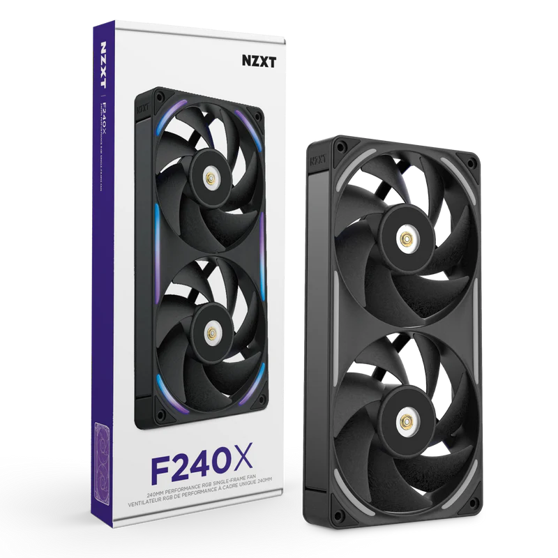 NZXT F240X 240mm Performance RGB Single-Frame Computer Cooling Fan - Black - Liquid-Crystal Polymer Construction - Custom Hybrid Bearings - Reinforced Metal Core (RF-U24PN-B1)