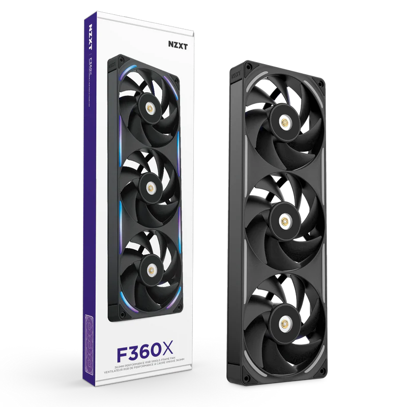 NZXT F360X 360mm Performance RGB Single-Frame Computer Cooling Fan - Black - Liquid-Crystal Polymer Construction - Custom Hybrid Bearings - Reinforced Metal Core (RF-U36PN-B1)