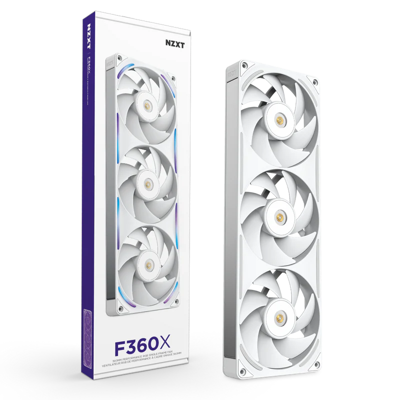 NZXT F360X 360mm Performance RGB Single-Frame Computer Cooling Fan - White - Liquid-Crystal Polymer Construction - Custom Hybrid Bearings - Reinforced Metal Core (RF-U36PN-W1)