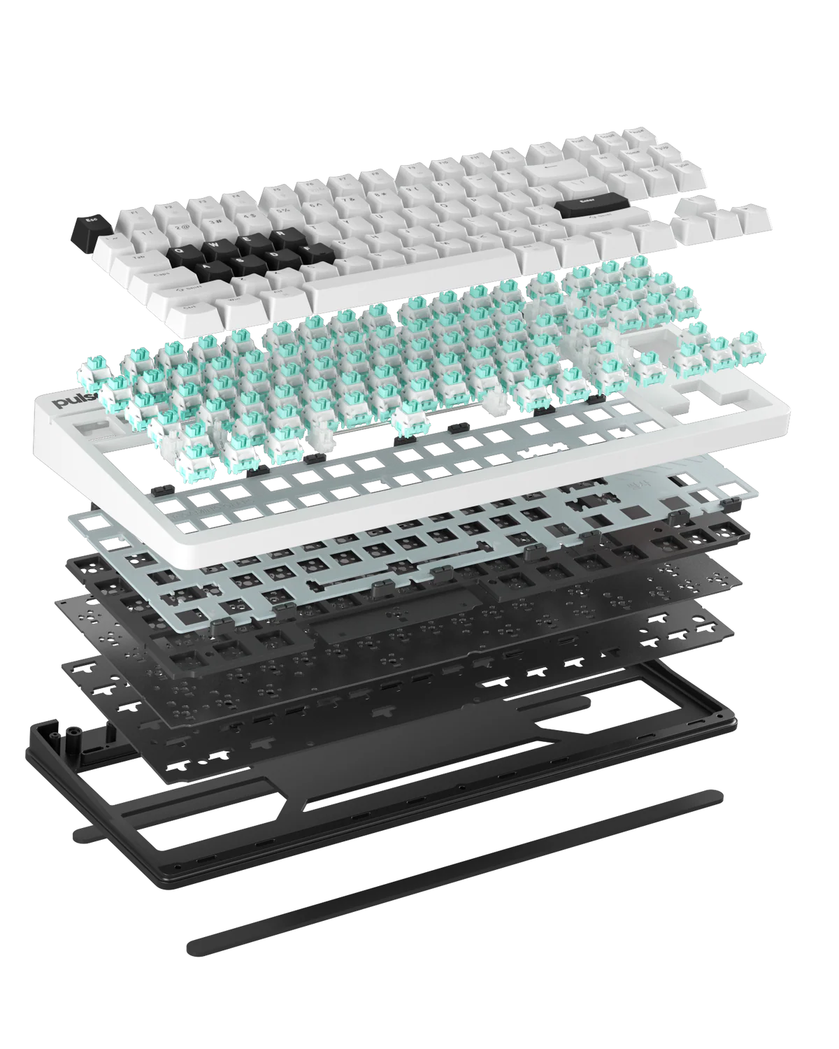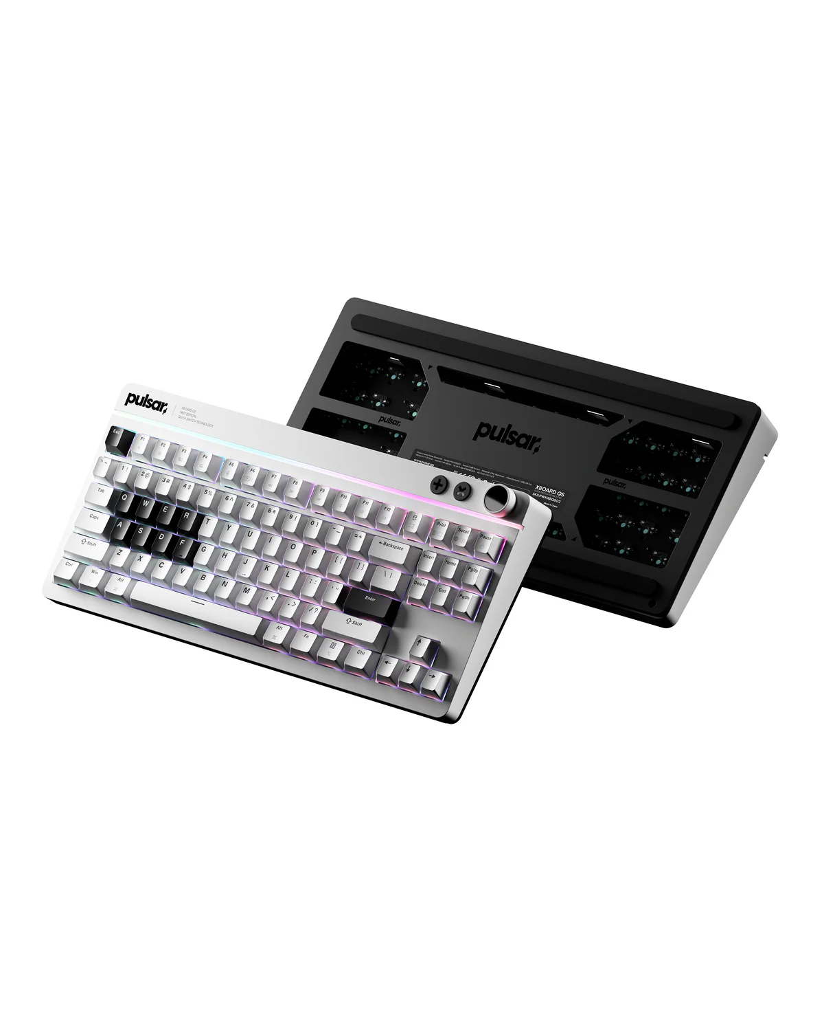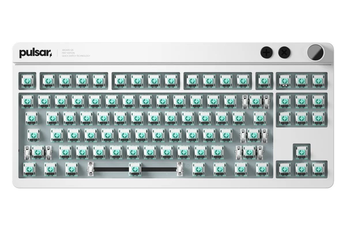 Pulsar XBOARD QS Mechanical Gaming Keyboard - ANSI - White - Kailh Box Ice Mint V2 Linear Swtich - Customizable RGB Lighting - Hot-Swappable - Built-in Dual USB-A Hubs - Quick Switch Button - Volume & LED Control Knob (PWKXBQS02)