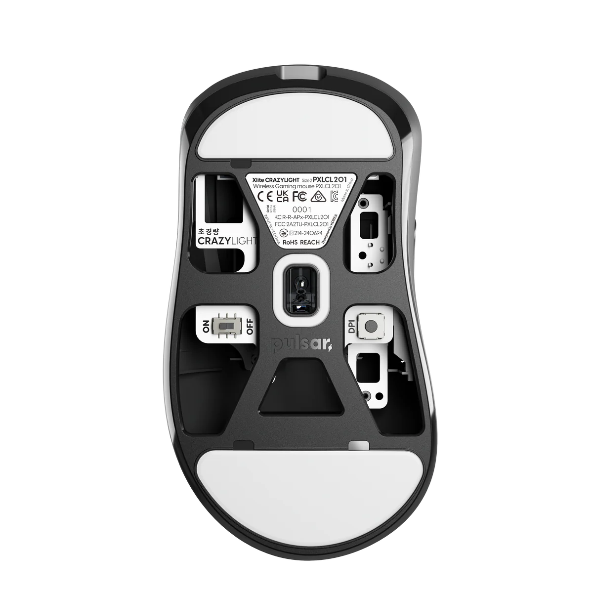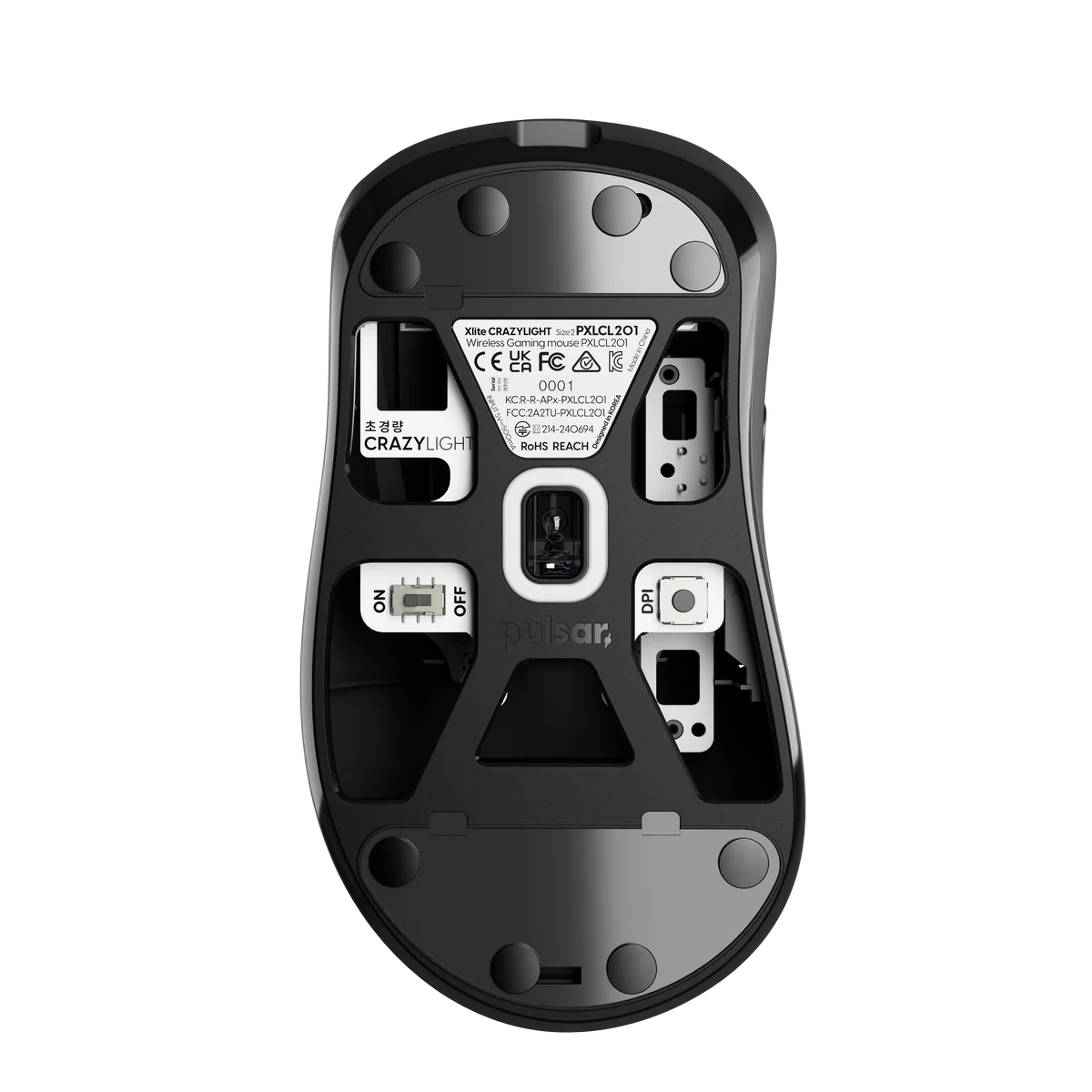 Pulsar Xlite CrazyLight Medium Gaming Mouse - Jet Black - 44g Lightweight - XS-1 Fkagship Sensor - 32000 DPI - 750 IPS - 50g Acceleration - 8K Polling Rate - Adjustable LOD Settings - Optical Switches - TTC Golden Encoder (PXLCL201)