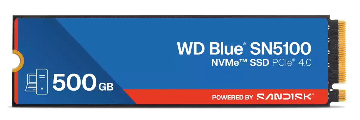 SanDisk WD Blue SN5100 NVMe SSD PCIe 4.0 500GB M.2-2280 Internal Solid State Drive - PCIe Gen 4.0 - 3D CBA NAND - Sequential Read up to 6000MB/s - Sequential Write up to 5600MB/s - 300 TBW (WDS500G5B0E-00CPE0)