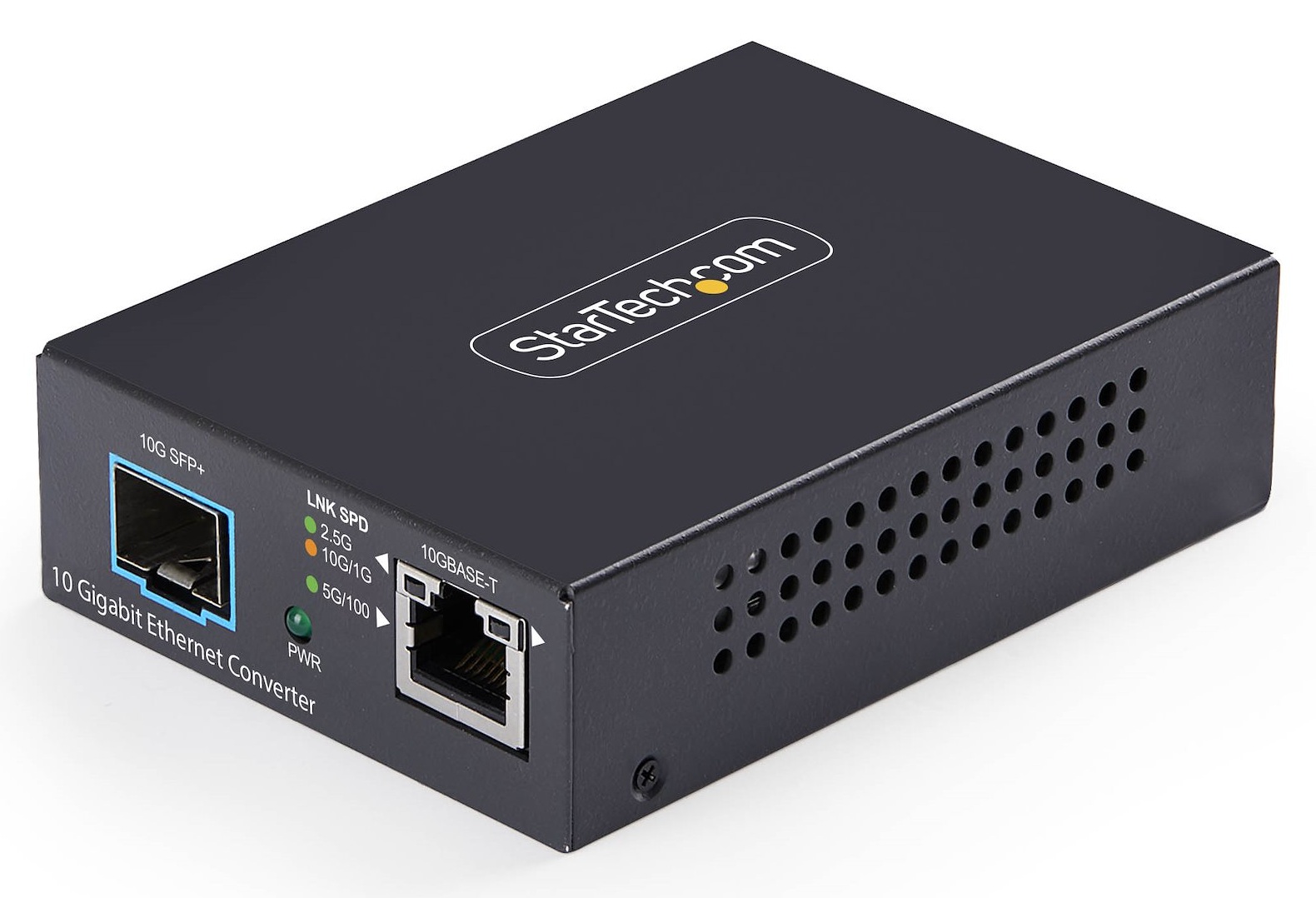 StarTech 10GbE Multi-Gigabit Open SFP+ Fiber Media Converter - 10G/5G/2.5G/1G/100M - Copper to 10GBASE-X SFP+ - Single-Mode - Multi-Mode - 16K Jumbo Frames - TAA Compliant (MCM10G6SSFP)