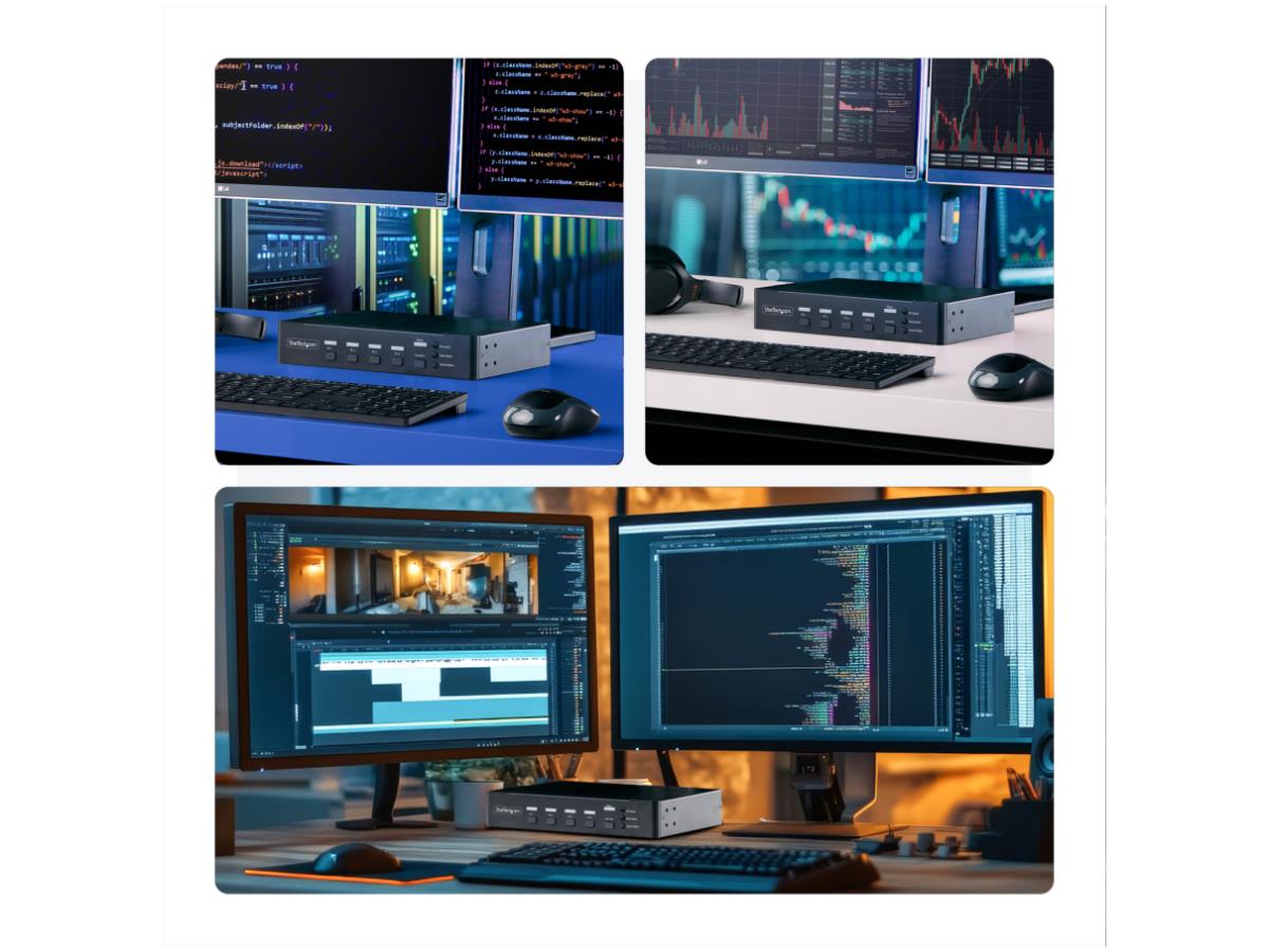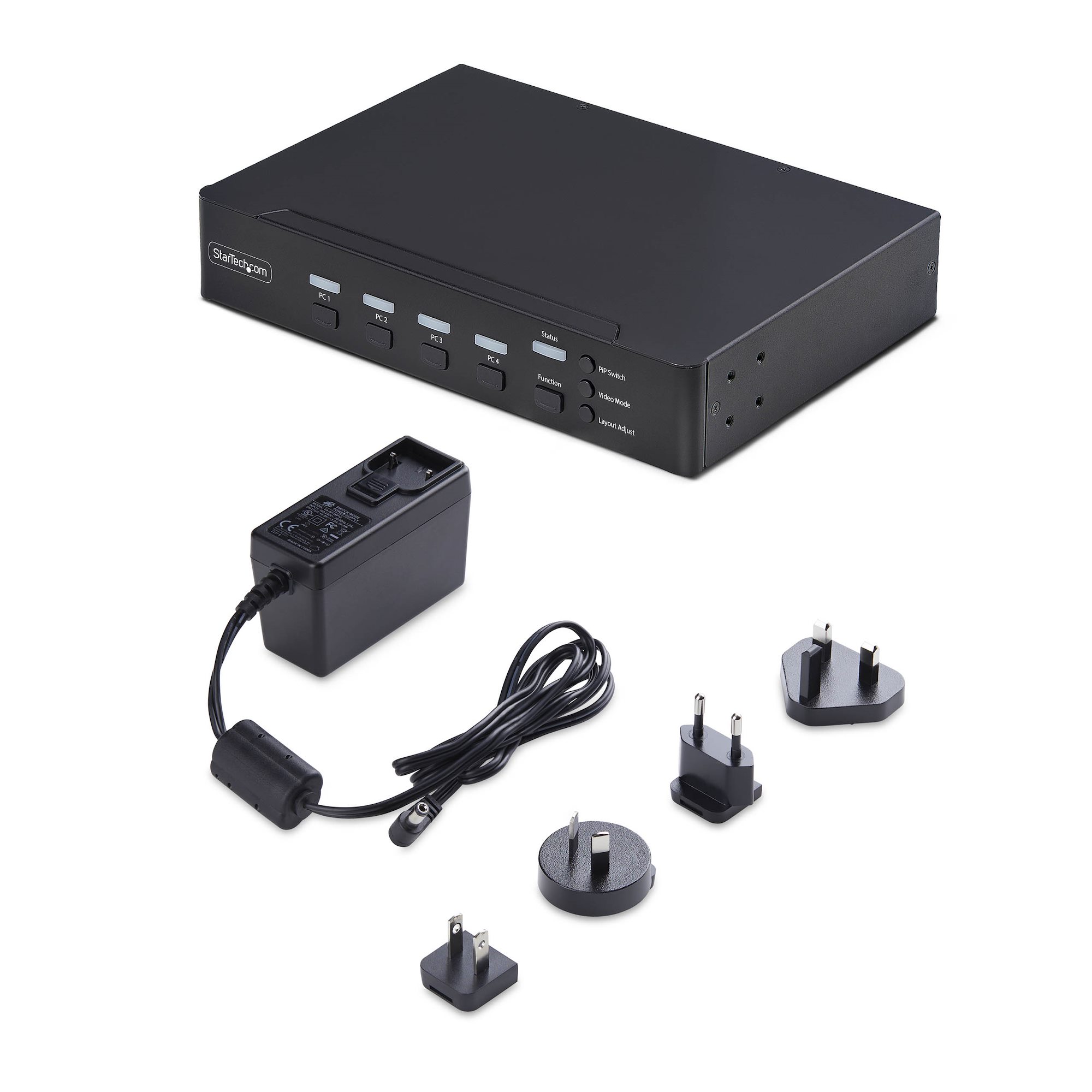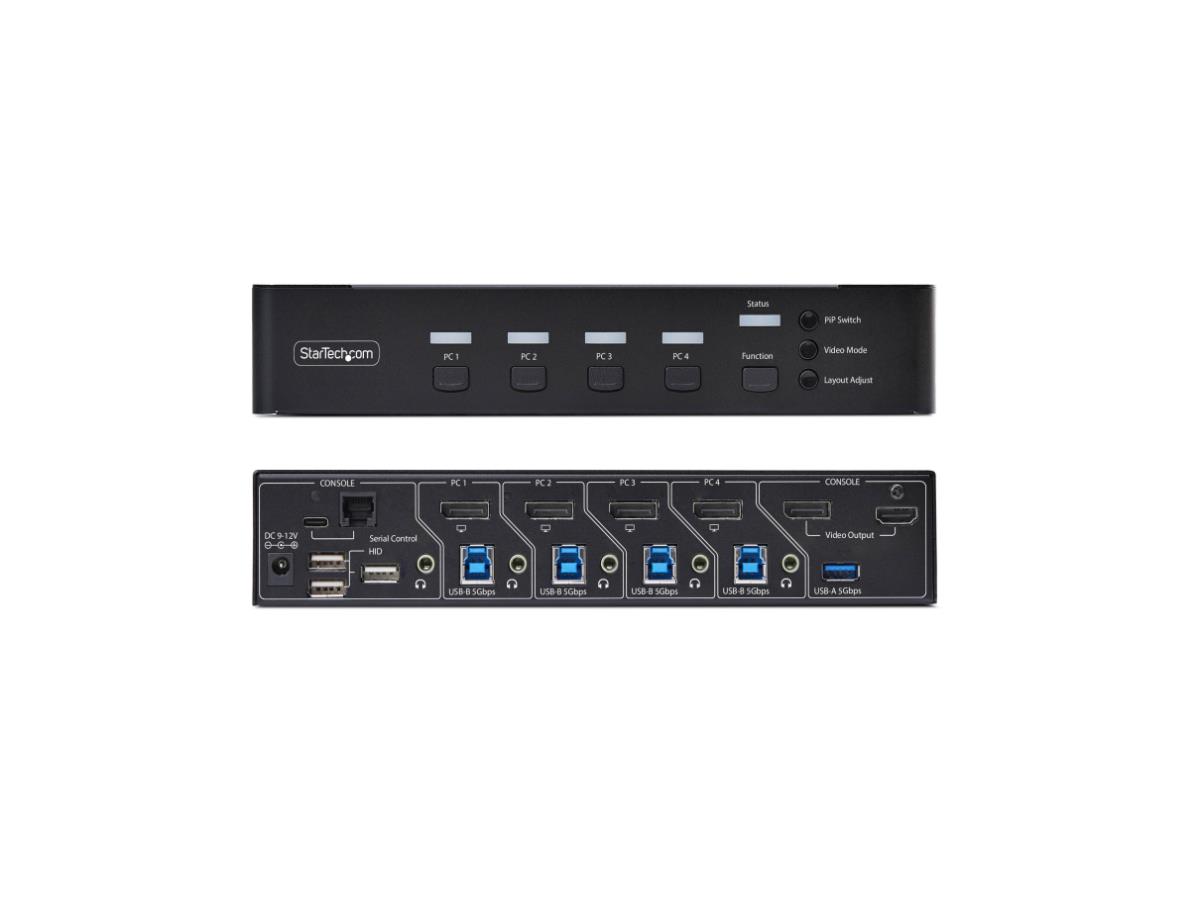 StarTech 4-Port DisplayPort KVM Switch with Mouse Roaming and Multi-View / Picture-in-Picture - 4K@60Hz - USB 3.0 (5Gbps) Hub - Hotkey Control - TAA Compliant (P4AD122M-KVM-SWITCH)