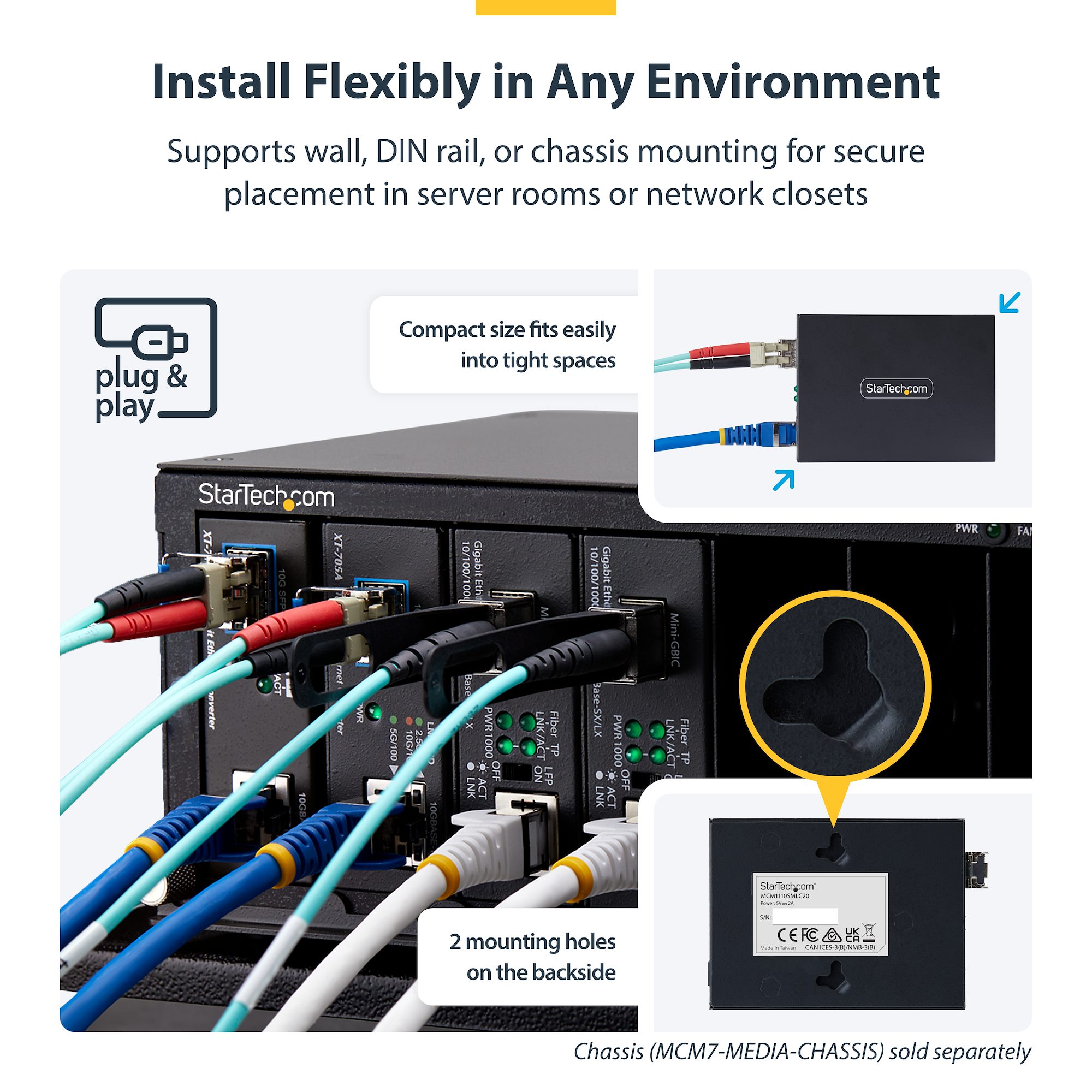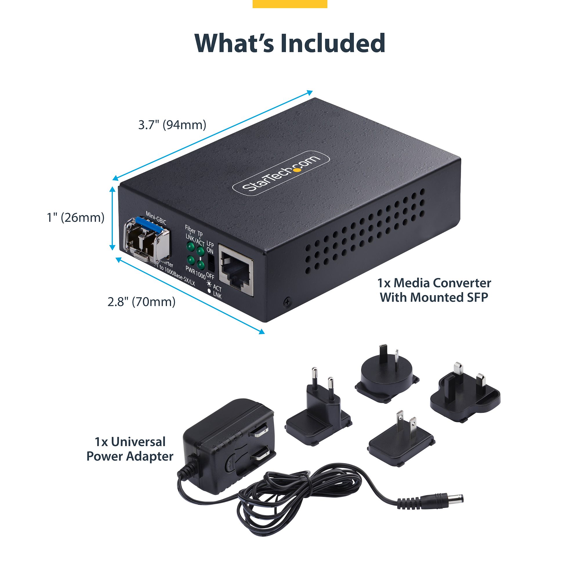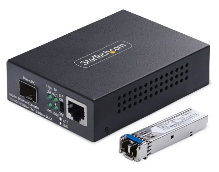 StarTech Gigabit Ethernet Copper-to-Fiber Media Converter - Extend Single-Mode LC Fiber up to 20KM - 10/100/1000 Mbps - RJ45 to LC - Full Metal Chassis - 9K Jumbo Frames - TAA Compliant (MCM1110SMLC20)