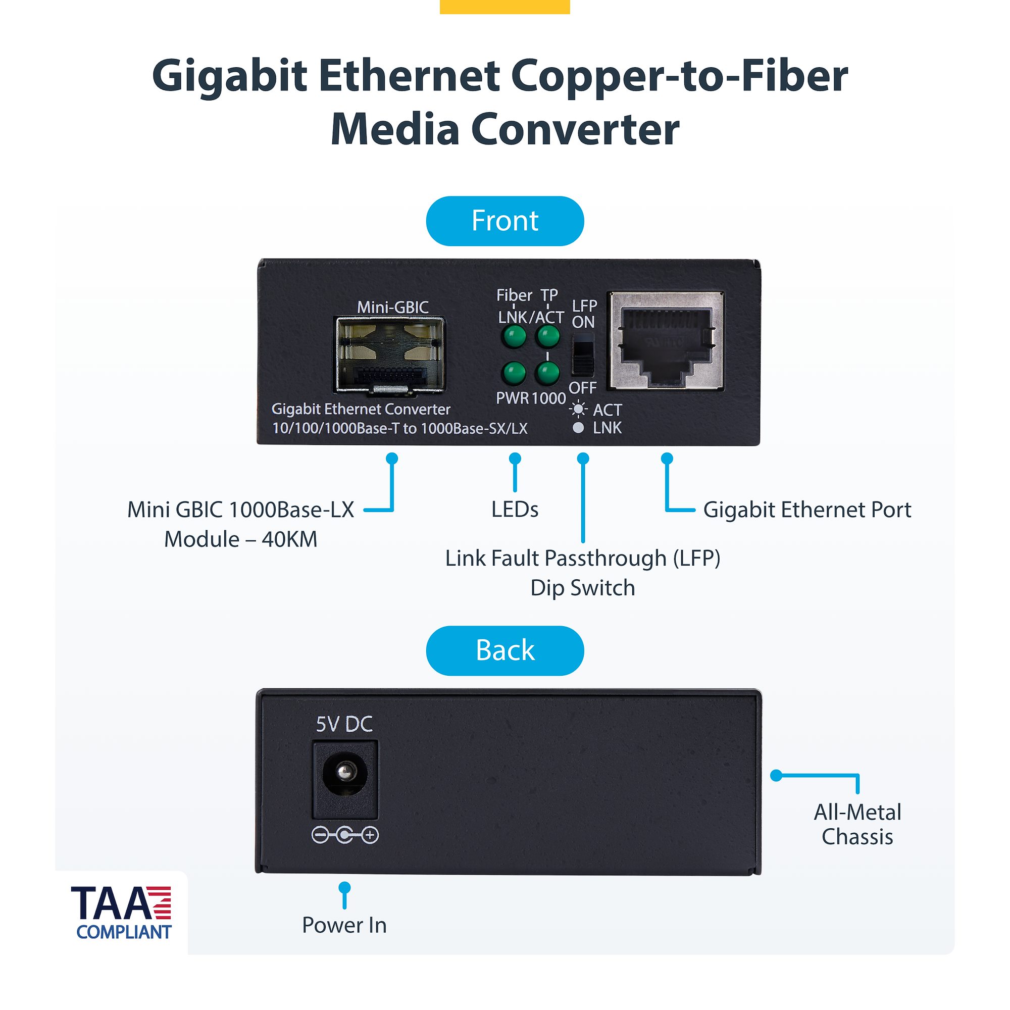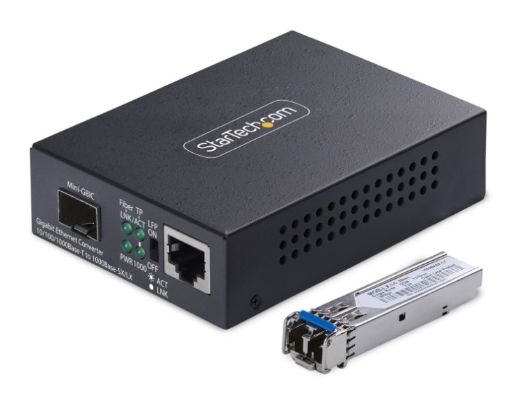 StarTech Gigabit Ethernet Copper-to-Fiber Media Converter - Extend Single-Mode LC Fiber up to 40KM - 10/100/1000 Mbps - RJ45 to LC - Full Metal Chassis - 9K Jumbo Frames - TAA Compliant (MCM1110SMLC40)