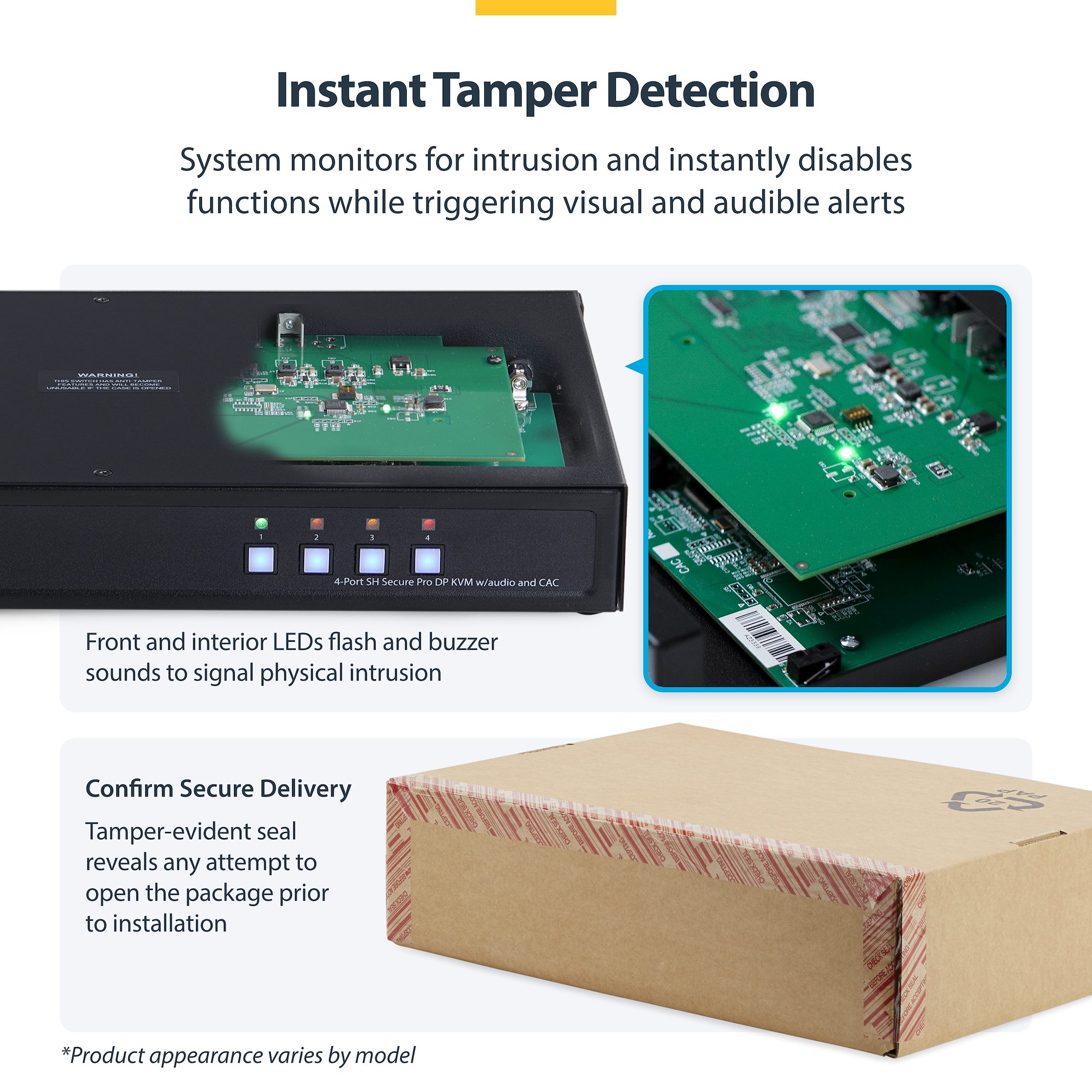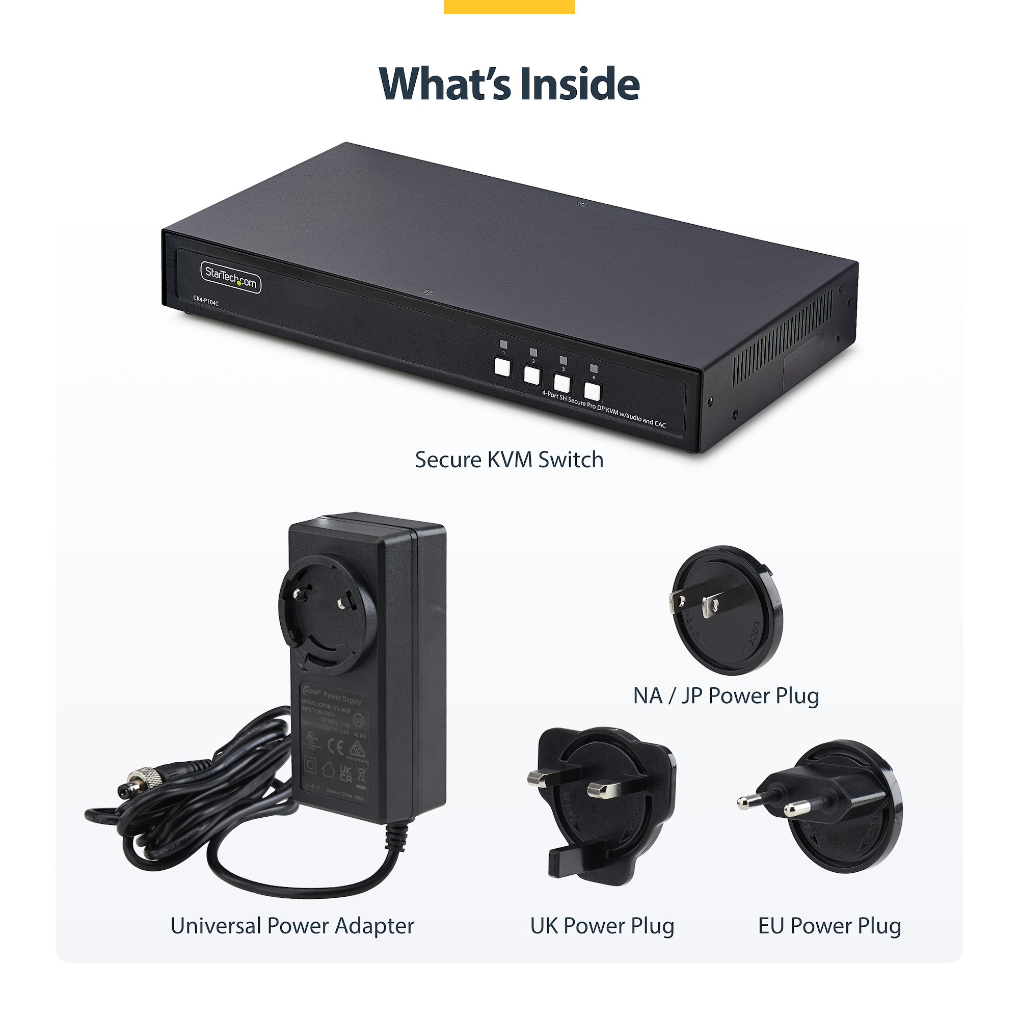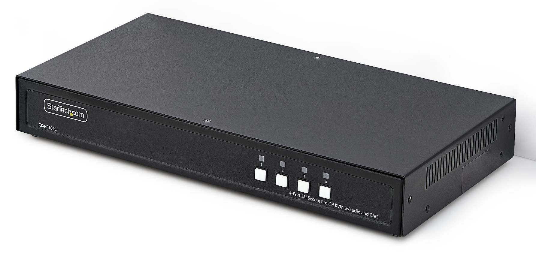 StarTech Secure 4-Port DisplayPort KVM Switch - 4K@30Hz Resolution - NIAP PSD 4.0 Certified - Dedicated Common Access Card Port - Metal Housing - Tamper Protection System - TAA Compliant (CK4-P104C)