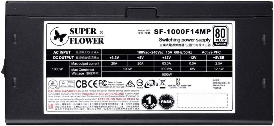 Super Flower LEADEX PLATINUM SE 1000W Fully Modular Power Supply - 80 PLUS Platinum Certified - ATX 12V v2.2, EPS 12V v2.91 - 140mm Dual Ball Bearing Fan - ECO Fanless & Silent Mode - 8x PCI-e 6+2-Pin Connectors (SF-1000F14MP)