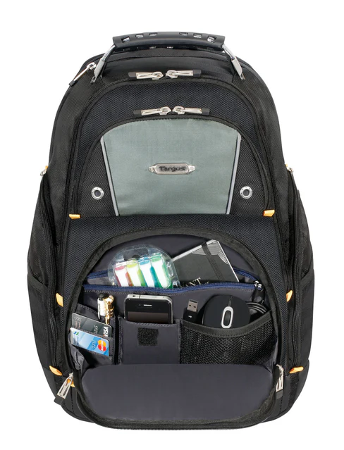 Targus Drifter II Laptop Backpack for up to 17" Screens (Black/Gray) - Padded Laptop Compartment - Durable Water-Resistant Base - Rugged Carry Handle - Soft-lined Sunglasses Pocket (TSB239US)