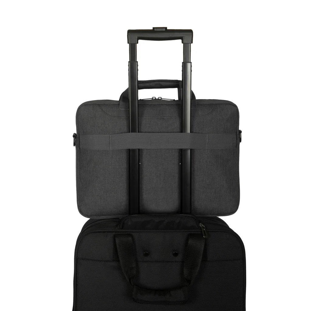 Targus GeoLite EcoSmart Slim Brief Topload for 15-16" Laptops - Grey - Removable & Adjustable Shoulder Strap - Luggage Trolley Pass-through Strap (TSS98404GL)