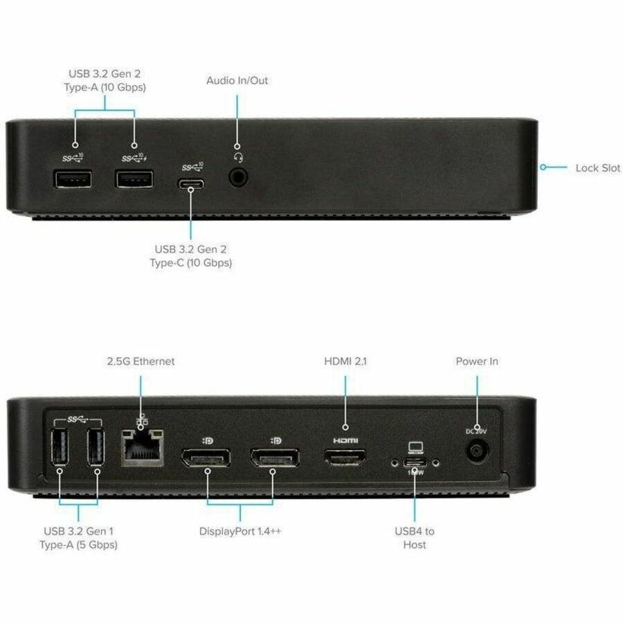 Targus USB4 Triple Video Docking Station with 100W Power - 1x USB 3.2 Gen 2 Type-C port (10Gbps and powered to 7.5W) - 2x USB 3.2 Gen 2 Type-A (10Gbps), 1 fast charging - 2x USB 3.2 Gen 1 Type-A (5Gbps) - 2.5G Ethernet - 1x 3.5mm combo Audio (DOCK460USZ)