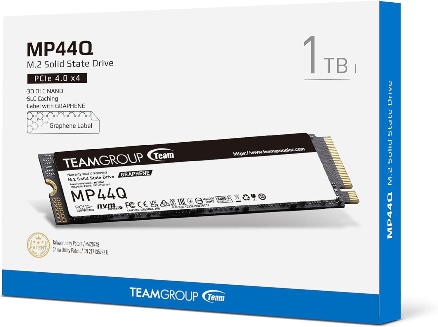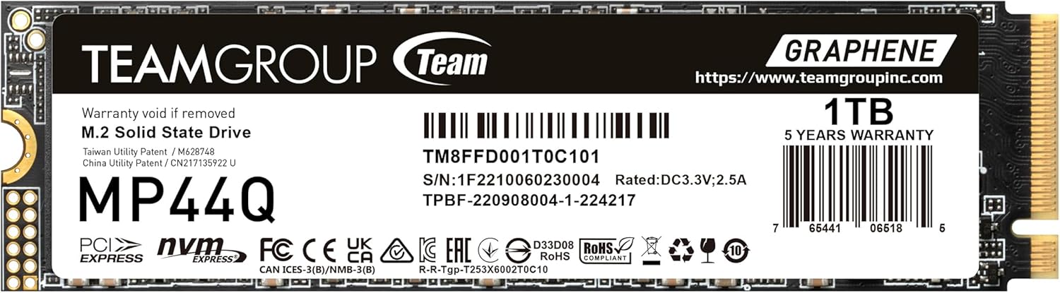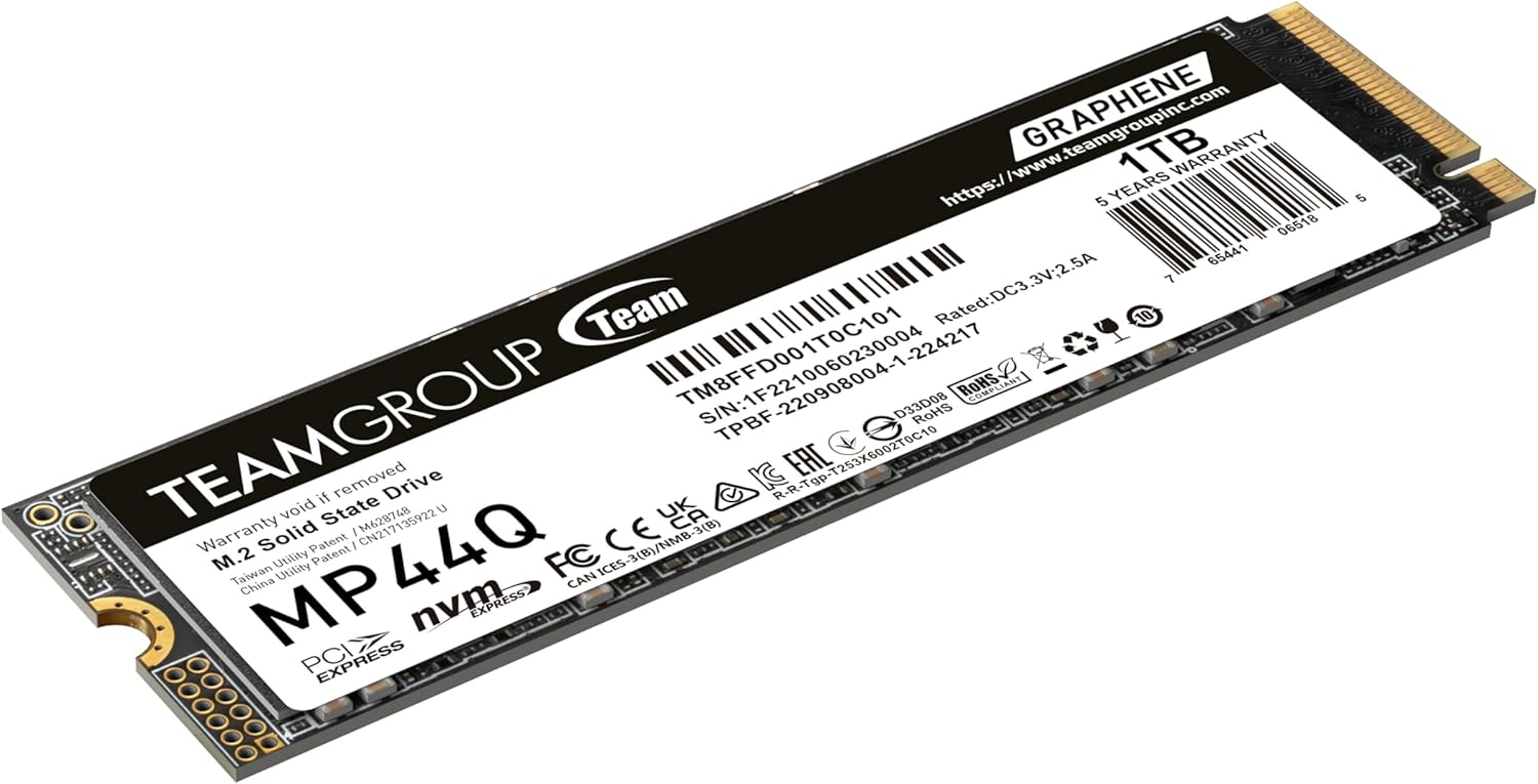 TEAMGROUP MP44Q M.2-2280 1TB PCIe 4.0 SSD - PCIe 4.0 x4 with NVMe - 3D QLC NAND - Graphene Heat Dissipation Label - Sequential Read up to 7000 MB/s - Sequential Write up to 5900 MB/s - 500TBW (TM8FFD001T0C101)