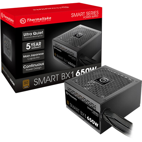 Thermaltake Smart BX1 650W ATX Power Supply - 80 PLUS BRONZE Certified - ATX 12V v2.3 & EPS v2.92 - 120mm Hydraulic Bearing Fan - Single +12V Rail - 2x PCI-E 6+2-Pin Connectors (PS-SPD-0650NNFABU-4)