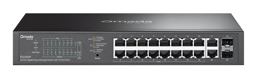 TP-Link ES220GP Omada 20-Port Gigabit Easy Managed Switch with 16-Port PoE+ - 2x Gigabit SFP Slots - 150W PoE Budget (ES220GP)