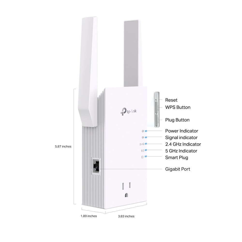 TP-Link RE765X AX3000 Wi-Fi 6 Range Extender with AC Passthrough - Dual Band 802.11ax - Built-in Power Socket - EasyMesh-Compatible - AP Mode - Gigabit Ethernet Port (RE765X)