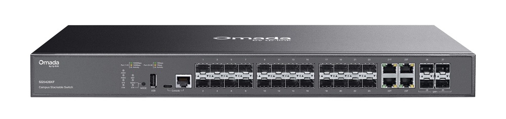 TP-Link SG5428XF Omada Campus 24-Port SFP Stackable Lite L3 Managed Switch with 4× 10G Slots - 20× Gigabit SFP slots - 4× 10 Gbps SFP+ slots - Dual Internal Power Supplies (SG5428XF)