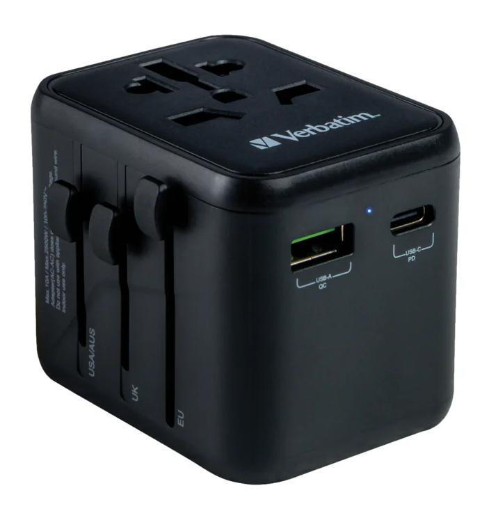 Verbatim 20W Universal Travel Adapter - Supports 20W Power Delivery (PD) & 18W Quick Charge (QC) - USB-A & USB-C ports - Flame-resistant (49544)